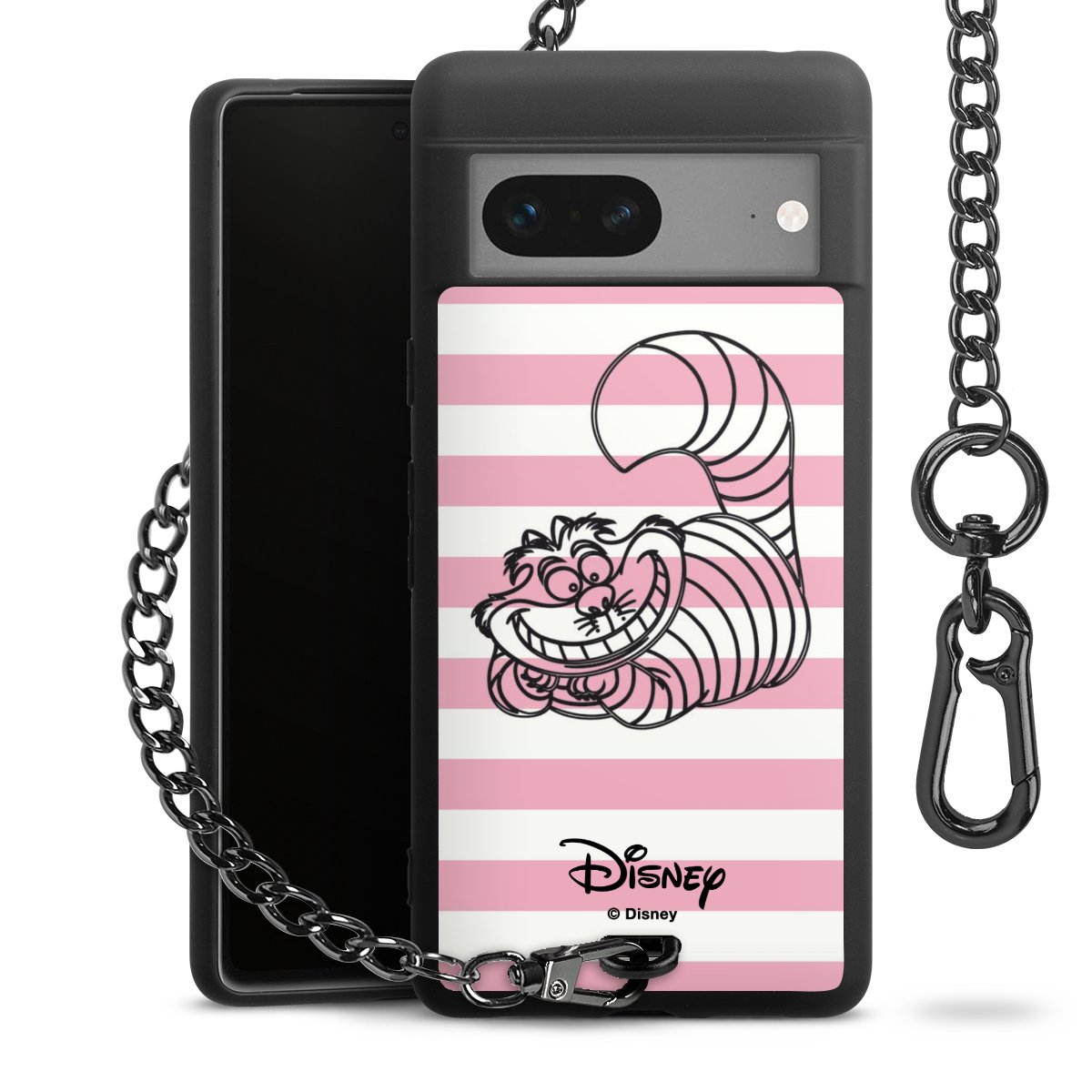 Die mattschwarze Silikon-Handyhülle besteht aus robustem TPU (thermoplastisches Polyurethan). Sie ist flexibel und schützt Dein Smartphone vor Stößen und Kratzern. Die Kette sowie der Karabinerhaken sind aus Metall in Gunmetal-Optik gefertigt. Für dieses Produkt kommen ausschließlich TÜV-geprüfte Materialien zum Einsatz.