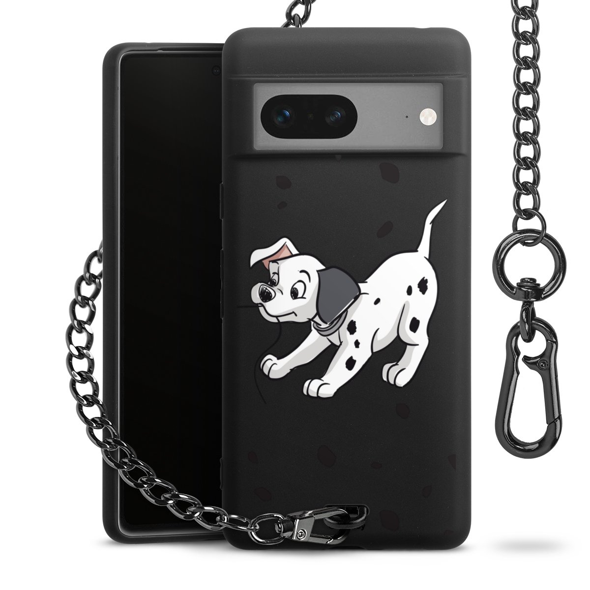 Die mattschwarze Silikon-Handyhülle besteht aus robustem TPU (thermoplastisches Polyurethan). Sie ist flexibel und schützt Dein Smartphone vor Stößen und Kratzern. Die Kette sowie der Karabinerhaken sind aus Metall in Gunmetal-Optik gefertigt. Für dieses Produkt kommen ausschließlich TÜV-geprüfte Materialien zum Einsatz.