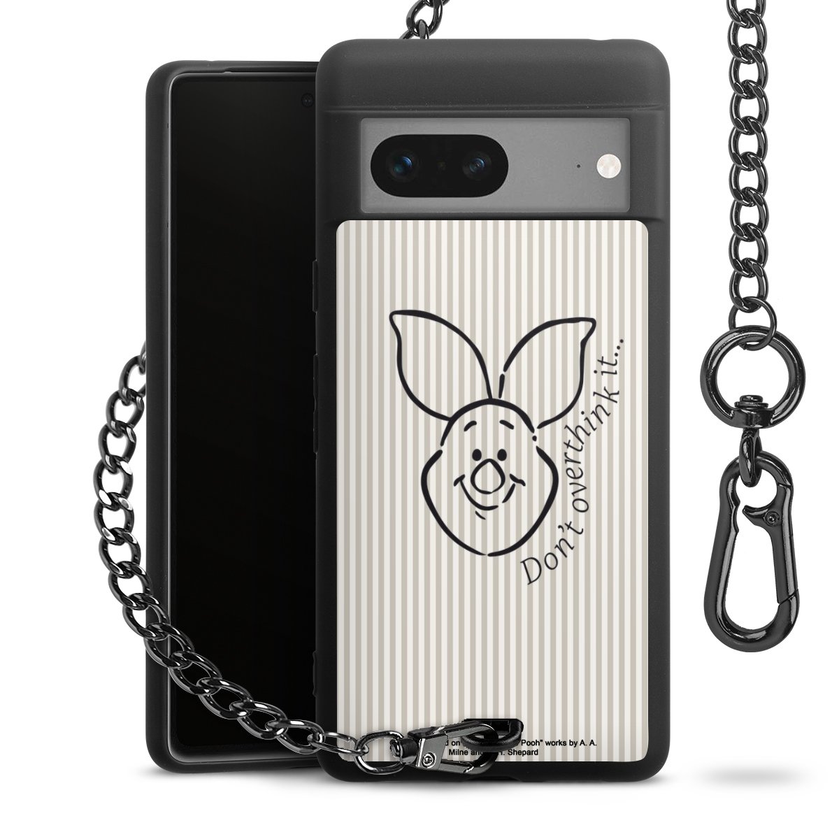 Die mattschwarze Silikon-Handyhülle besteht aus robustem TPU (thermoplastisches Polyurethan). Sie ist flexibel und schützt Dein Smartphone vor Stößen und Kratzern. Die Kette sowie der Karabinerhaken sind aus Metall in Gunmetal-Optik gefertigt. Für dieses Produkt kommen ausschließlich TÜV-geprüfte Materialien zum Einsatz.
