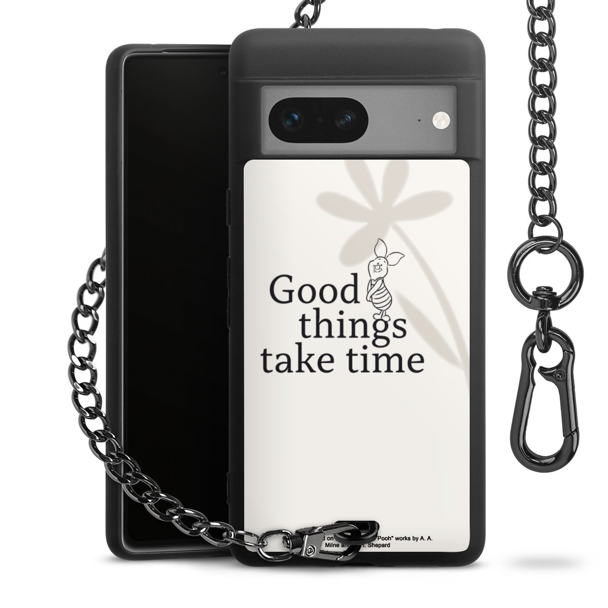 Die mattschwarze Silikon-Handyhülle besteht aus robustem TPU (thermoplastisches Polyurethan). Sie ist flexibel und schützt Dein Smartphone vor Stößen und Kratzern. Die Kette sowie der Karabinerhaken sind aus Metall in Gunmetal-Optik gefertigt. Für dieses Produkt kommen ausschließlich TÜV-geprüfte Materialien zum Einsatz.