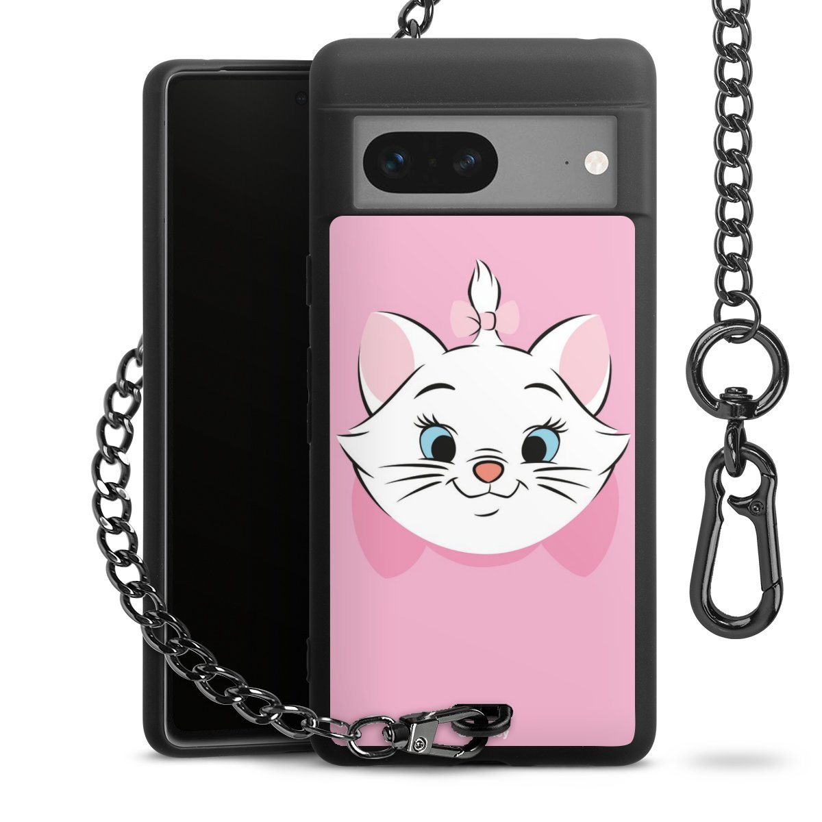 • Mattschwarze Handyhülle mit Metallkette
