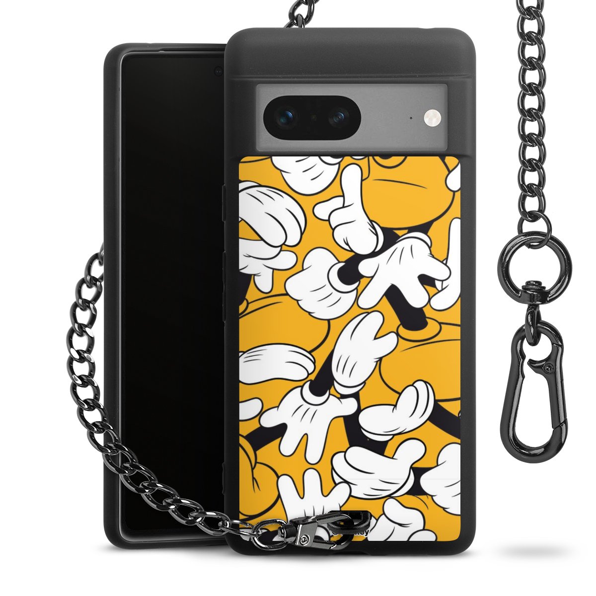 Die mattschwarze Silikon-Handyhülle besteht aus robustem TPU (thermoplastisches Polyurethan). Sie ist flexibel und schützt Dein Smartphone vor Stößen und Kratzern. Die Kette sowie der Karabinerhaken sind aus Metall in Gunmetal-Optik gefertigt. Für dieses Produkt kommen ausschließlich TÜV-geprüfte Materialien zum Einsatz.