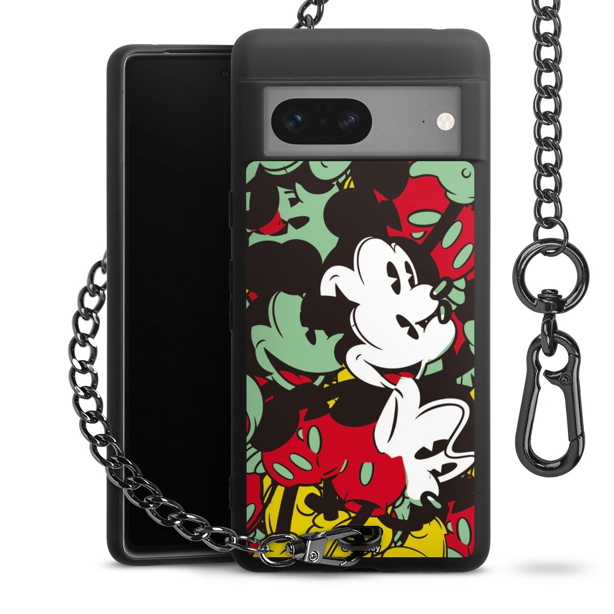 Die mattschwarze Silikon-Handyhülle besteht aus robustem TPU (thermoplastisches Polyurethan). Sie ist flexibel und schützt Dein Smartphone vor Stößen und Kratzern. Die Kette sowie der Karabinerhaken sind aus Metall in Gunmetal-Optik gefertigt. Für dieses Produkt kommen ausschließlich TÜV-geprüfte Materialien zum Einsatz.