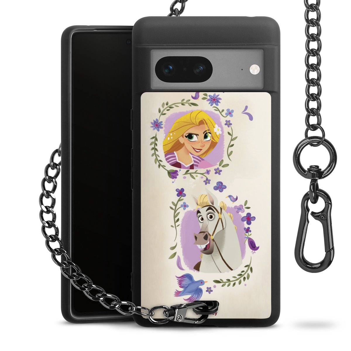 Die mattschwarze Silikon-Handyhülle besteht aus robustem TPU (thermoplastisches Polyurethan). Sie ist flexibel und schützt Dein Smartphone vor Stößen und Kratzern. Die Kette sowie der Karabinerhaken sind aus Metall in Gunmetal-Optik gefertigt. Für dieses Produkt kommen ausschließlich TÜV-geprüfte Materialien zum Einsatz.