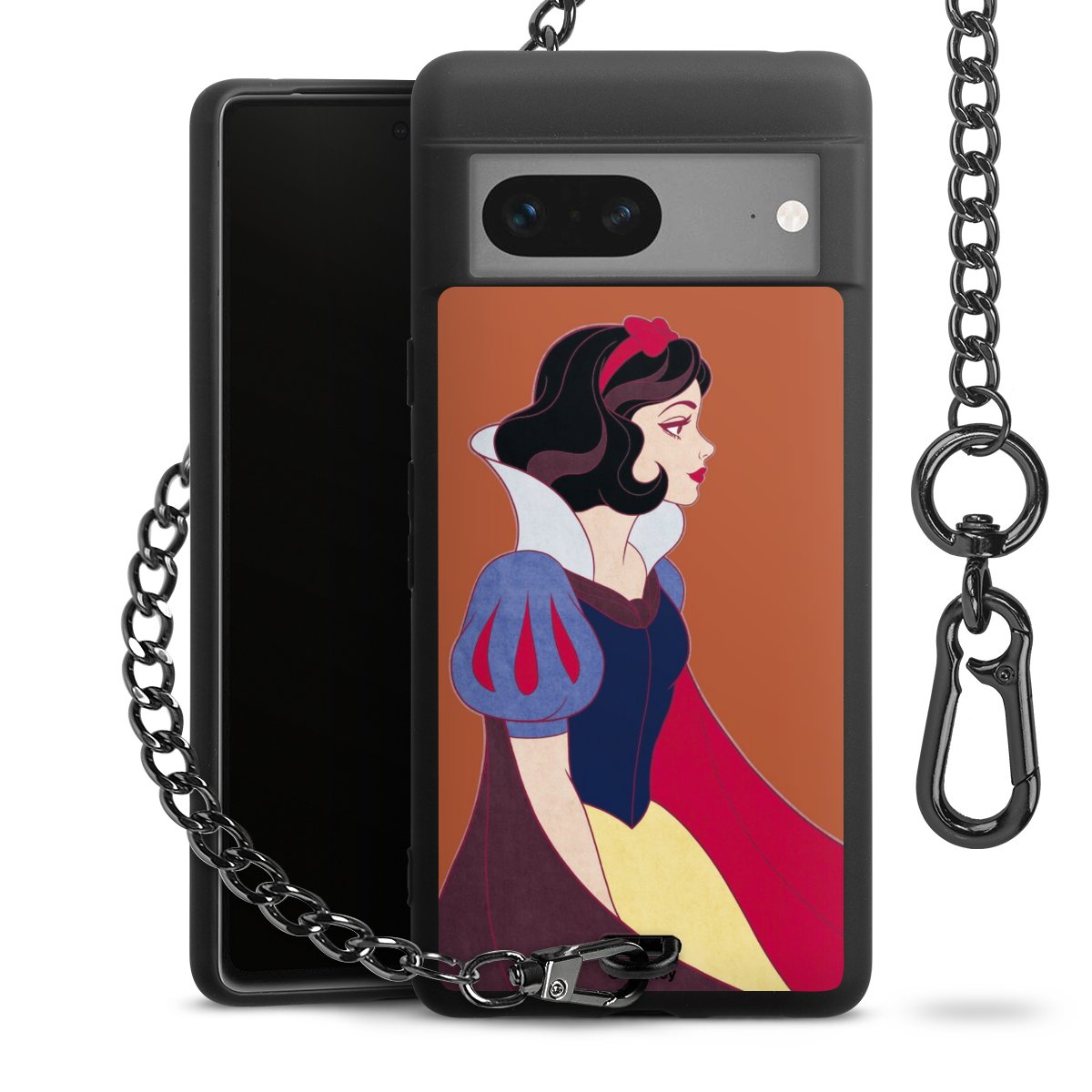 • Mattschwarze Handyhülle mit Metallkette