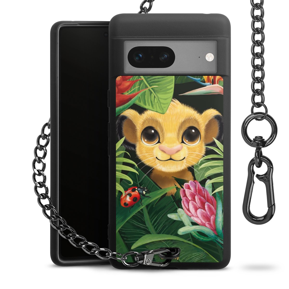 Die mattschwarze Silikon-Handyhülle besteht aus robustem TPU (thermoplastisches Polyurethan). Sie ist flexibel und schützt Dein Smartphone vor Stößen und Kratzern. Die Kette sowie der Karabinerhaken sind aus Metall in Gunmetal-Optik gefertigt. Für dieses Produkt kommen ausschließlich TÜV-geprüfte Materialien zum Einsatz.