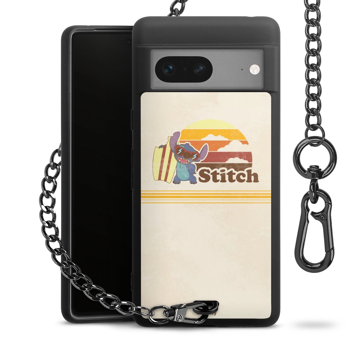 Die mattschwarze Silikon-Handyhülle besteht aus robustem TPU (thermoplastisches Polyurethan). Sie ist flexibel und schützt Dein Smartphone vor Stößen und Kratzern. Die Kette sowie der Karabinerhaken sind aus Metall in Gunmetal-Optik gefertigt. Für dieses Produkt kommen ausschließlich TÜV-geprüfte Materialien zum Einsatz.