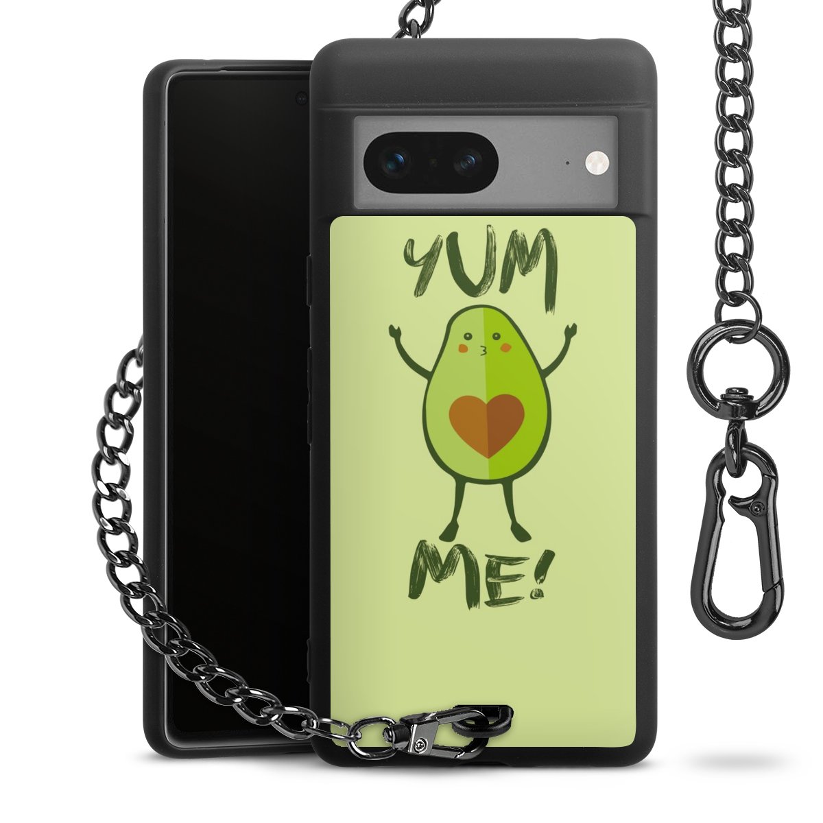 Die mattschwarze Silikon-Handyhülle besteht aus robustem TPU (thermoplastisches Polyurethan). Sie ist flexibel und schützt Dein Smartphone vor Stößen und Kratzern. Die Kette sowie der Karabinerhaken sind aus Metall in Gunmetal-Optik gefertigt. Für dieses Produkt kommen ausschließlich TÜV-geprüfte Materialien zum Einsatz.