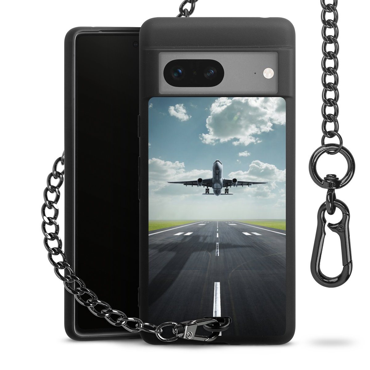 • Mattschwarze Handyhülle mit Metallkette