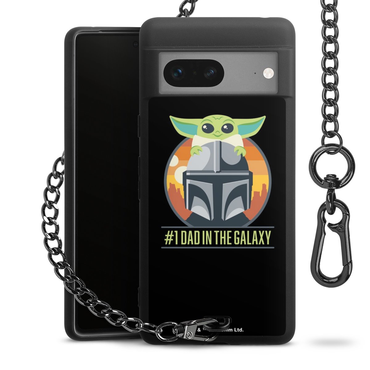 Die mattschwarze Silikon-Handyhülle besteht aus robustem TPU (thermoplastisches Polyurethan). Sie ist flexibel und schützt Dein Smartphone vor Stößen und Kratzern. Die Kette sowie der Karabinerhaken sind aus Metall in Gunmetal-Optik gefertigt. Für dieses Produkt kommen ausschließlich TÜV-geprüfte Materialien zum Einsatz.