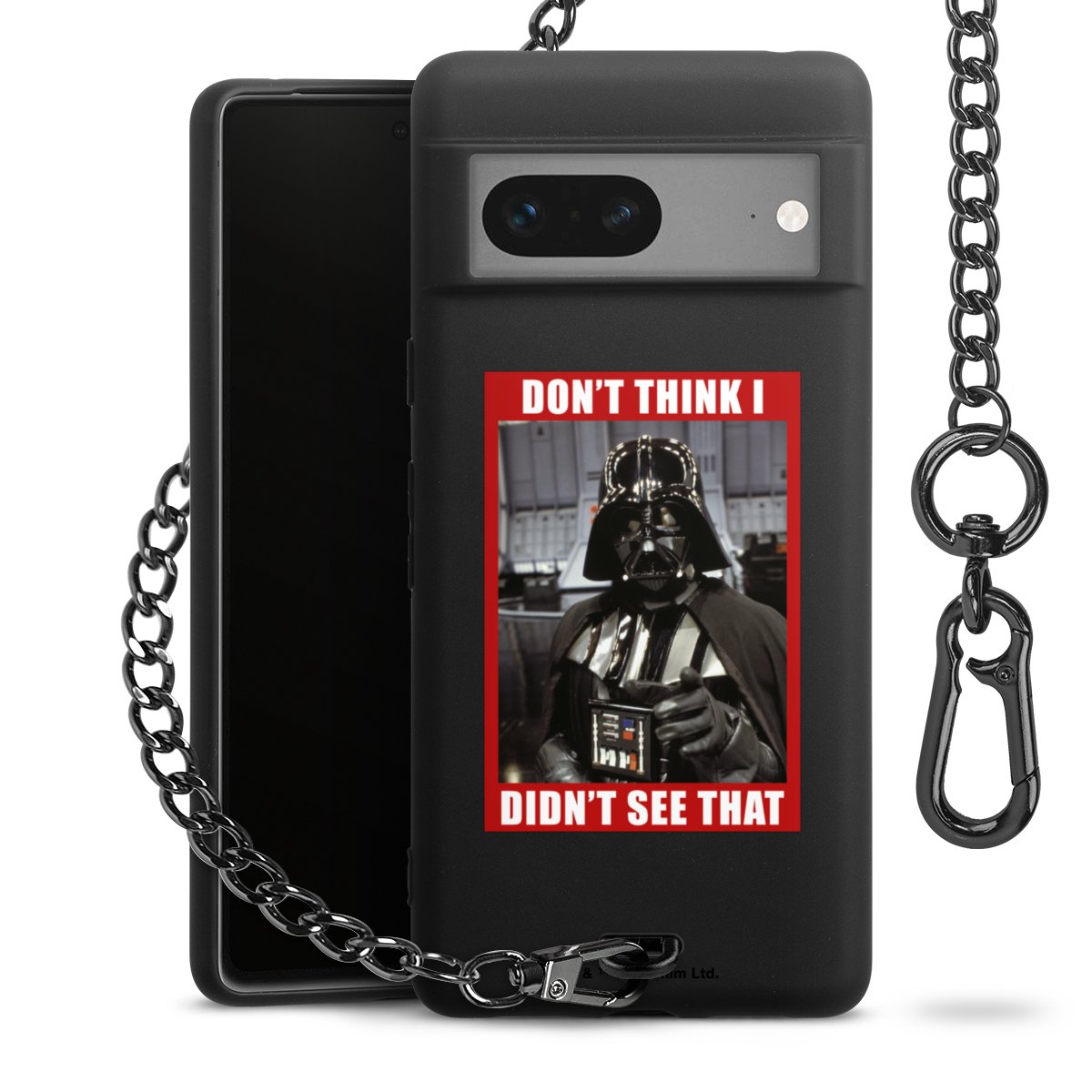 Die mattschwarze Silikon-Handyhülle besteht aus robustem TPU (thermoplastisches Polyurethan). Sie ist flexibel und schützt Dein Smartphone vor Stößen und Kratzern. Die Kette sowie der Karabinerhaken sind aus Metall in Gunmetal-Optik gefertigt. Für dieses Produkt kommen ausschließlich TÜV-geprüfte Materialien zum Einsatz.