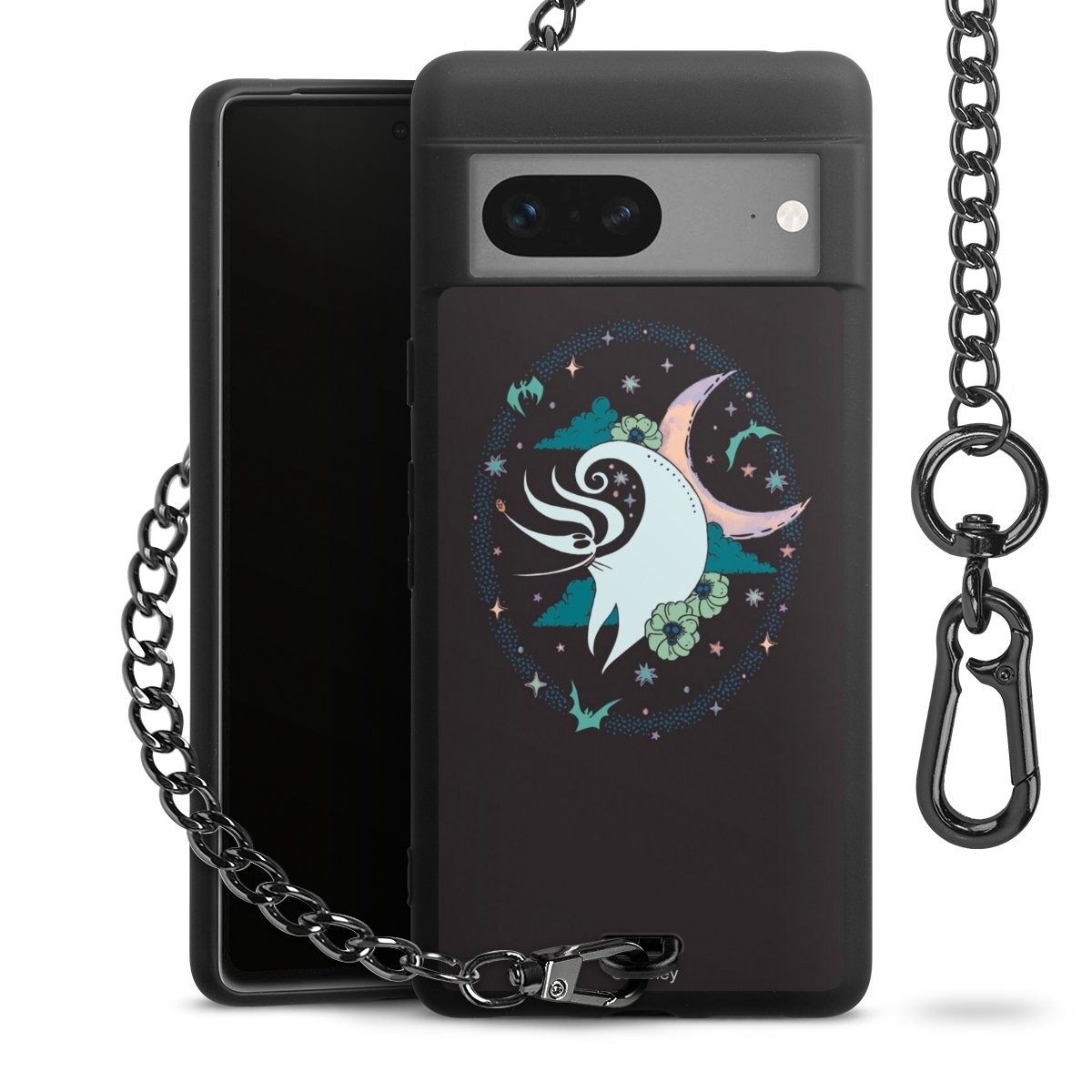 Die mattschwarze Silikon-Handyhülle besteht aus robustem TPU (thermoplastisches Polyurethan). Sie ist flexibel und schützt Dein Smartphone vor Stößen und Kratzern. Die Kette sowie der Karabinerhaken sind aus Metall in Gunmetal-Optik gefertigt. Für dieses Produkt kommen ausschließlich TÜV-geprüfte Materialien zum Einsatz.