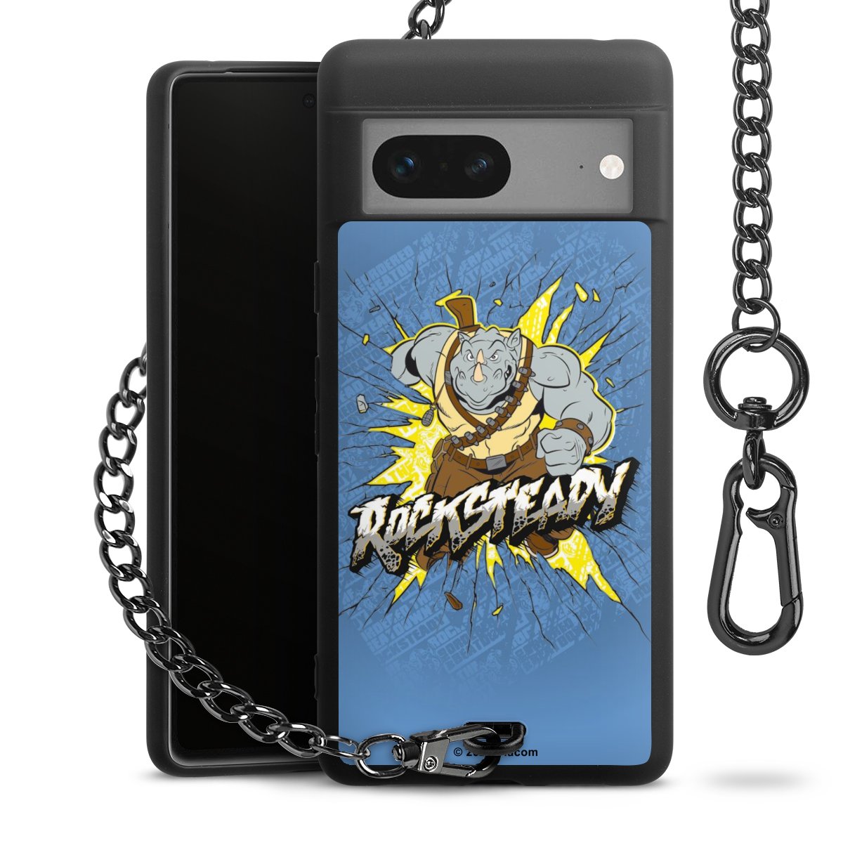 Die mattschwarze Silikon-Handyhülle besteht aus robustem TPU (thermoplastisches Polyurethan). Sie ist flexibel und schützt Dein Smartphone vor Stößen und Kratzern. Die Kette sowie der Karabinerhaken sind aus Metall in Gunmetal-Optik gefertigt. Für dieses Produkt kommen ausschließlich TÜV-geprüfte Materialien zum Einsatz.