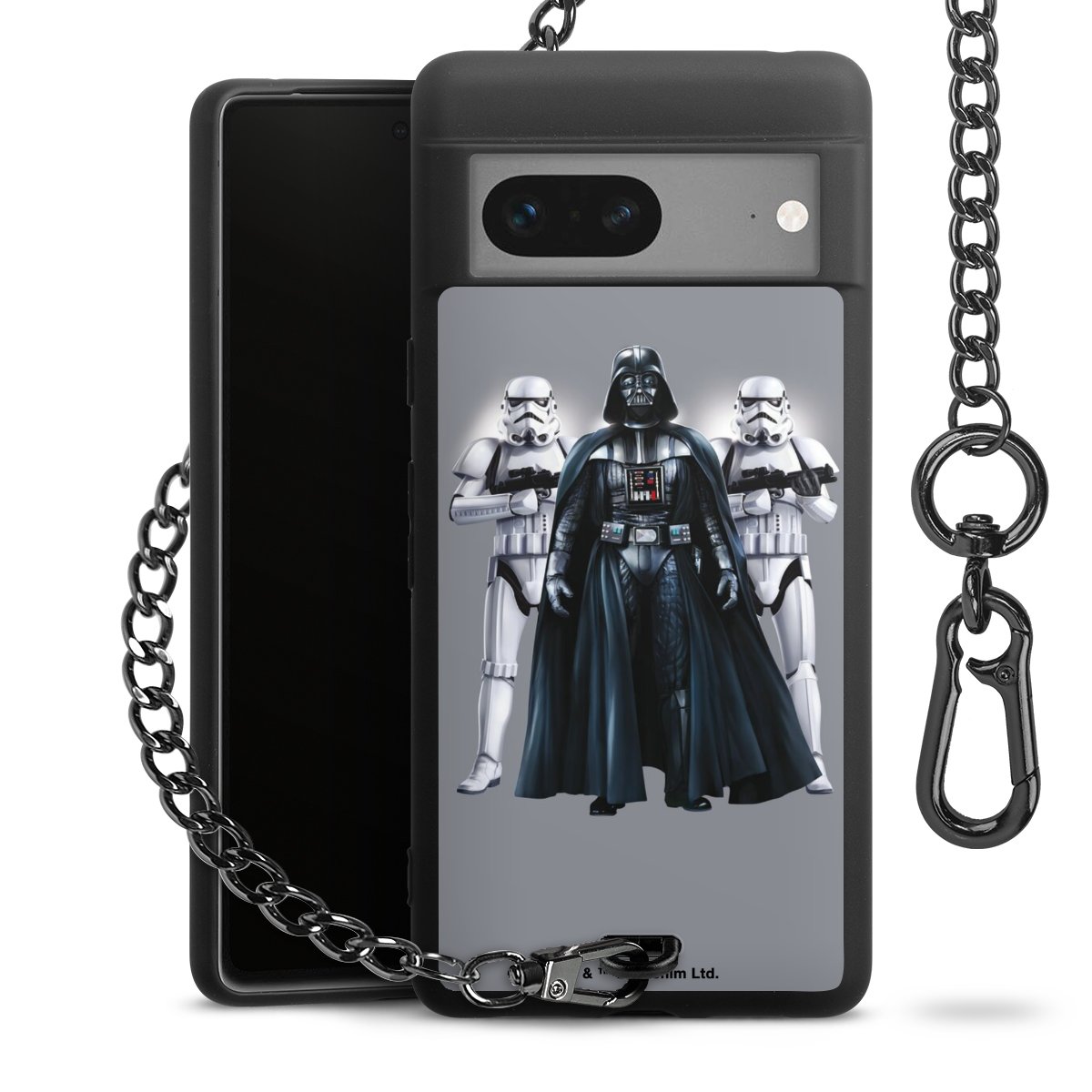 Die mattschwarze Silikon-Handyhülle besteht aus robustem TPU (thermoplastisches Polyurethan). Sie ist flexibel und schützt Dein Smartphone vor Stößen und Kratzern. Die Kette sowie der Karabinerhaken sind aus Metall in Gunmetal-Optik gefertigt. Für dieses Produkt kommen ausschließlich TÜV-geprüfte Materialien zum Einsatz.