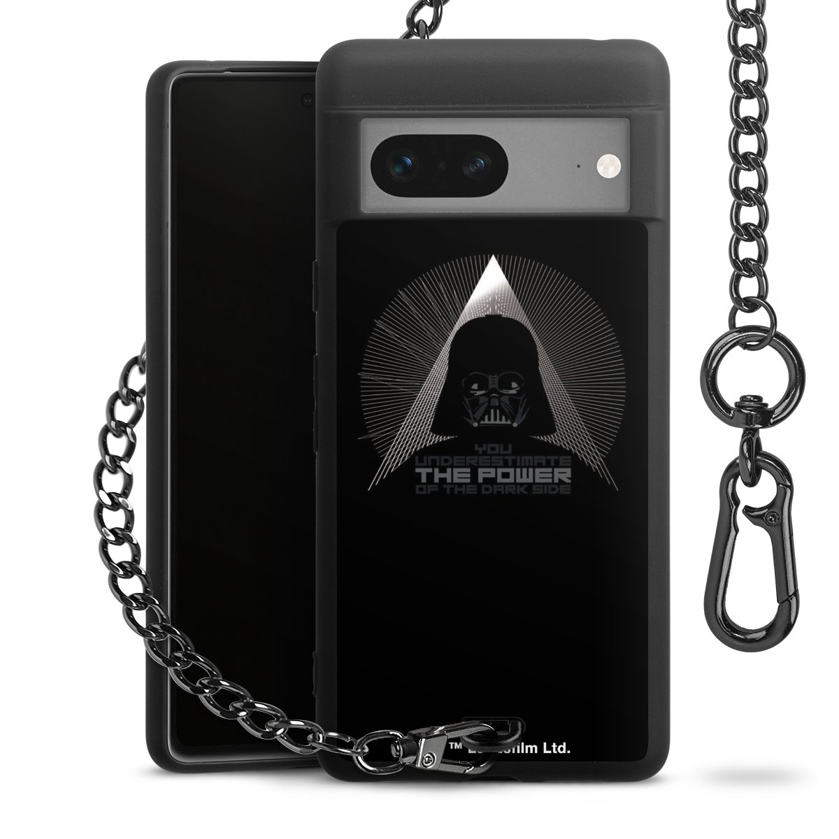 Die mattschwarze Silikon-Handyhülle besteht aus robustem TPU (thermoplastisches Polyurethan). Sie ist flexibel und schützt Dein Smartphone vor Stößen und Kratzern. Die Kette sowie der Karabinerhaken sind aus Metall in Gunmetal-Optik gefertigt. Für dieses Produkt kommen ausschließlich TÜV-geprüfte Materialien zum Einsatz.