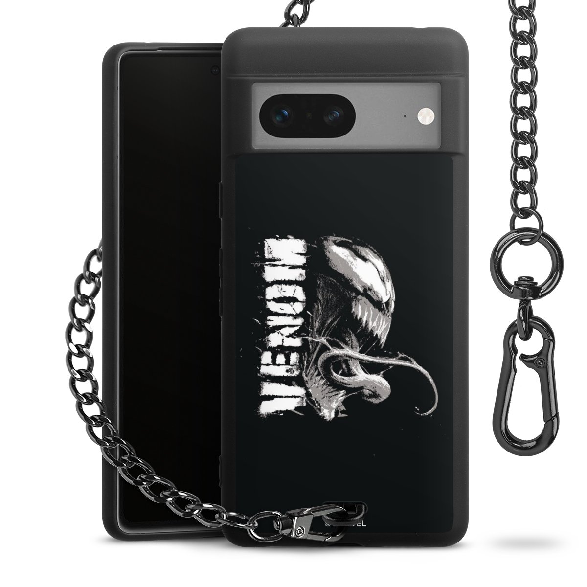 Die mattschwarze Silikon-Handyhülle besteht aus robustem TPU (thermoplastisches Polyurethan). Sie ist flexibel und schützt Dein Smartphone vor Stößen und Kratzern. Die Kette sowie der Karabinerhaken sind aus Metall in Gunmetal-Optik gefertigt. Für dieses Produkt kommen ausschließlich TÜV-geprüfte Materialien zum Einsatz.