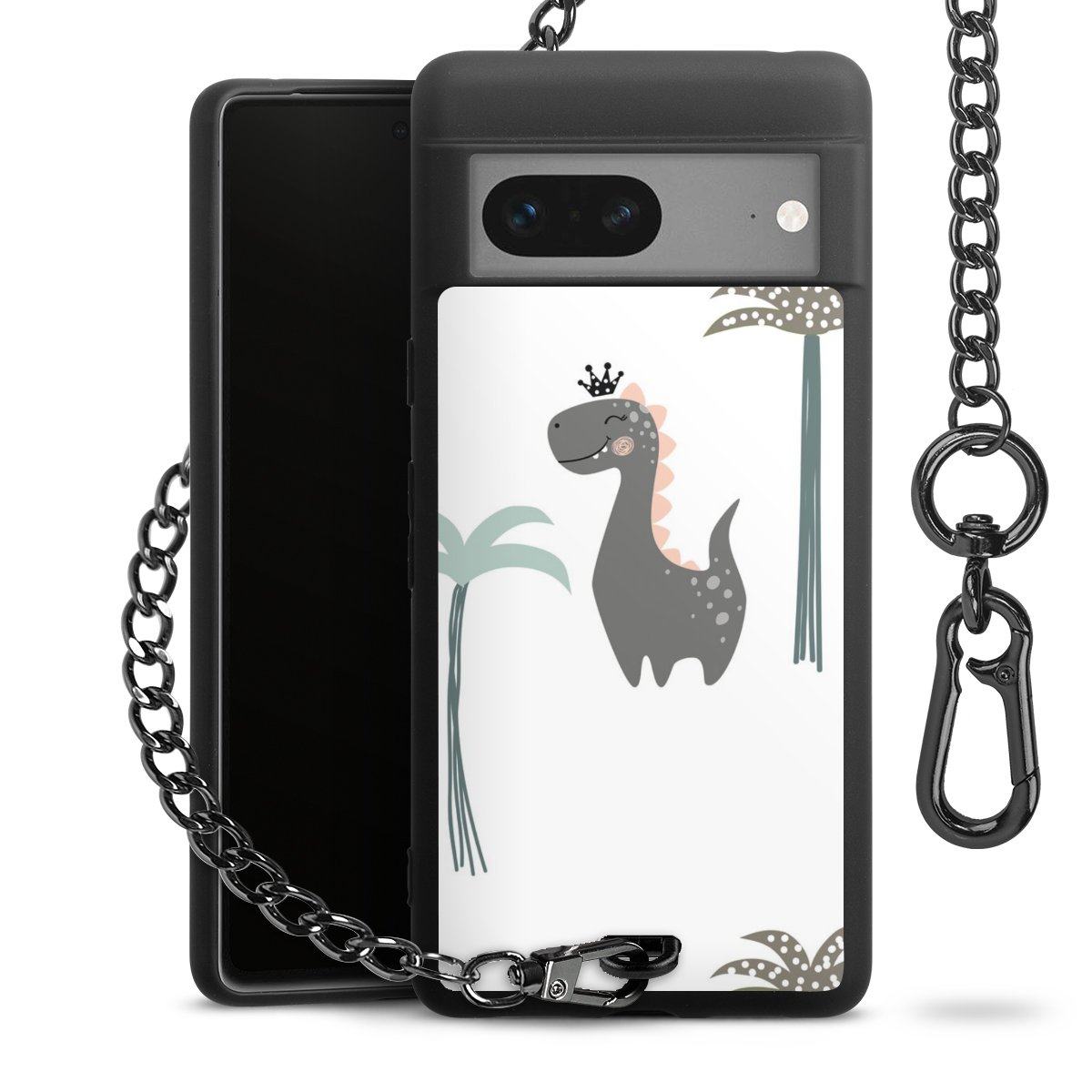 Die mattschwarze Silikon-Handyhülle besteht aus robustem TPU (thermoplastisches Polyurethan). Sie ist flexibel und schützt Dein Smartphone vor Stößen und Kratzern. Die Kette sowie der Karabinerhaken sind aus Metall in Gunmetal-Optik gefertigt. Für dieses Produkt kommen ausschließlich TÜV-geprüfte Materialien zum Einsatz.