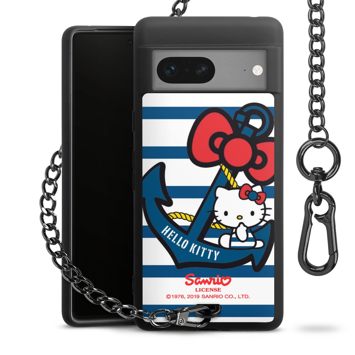 Die mattschwarze Silikon-Handyhülle besteht aus robustem TPU (thermoplastisches Polyurethan). Sie ist flexibel und schützt Dein Smartphone vor Stößen und Kratzern. Die Kette sowie der Karabinerhaken sind aus Metall in Gunmetal-Optik gefertigt. Für dieses Produkt kommen ausschließlich TÜV-geprüfte Materialien zum Einsatz.