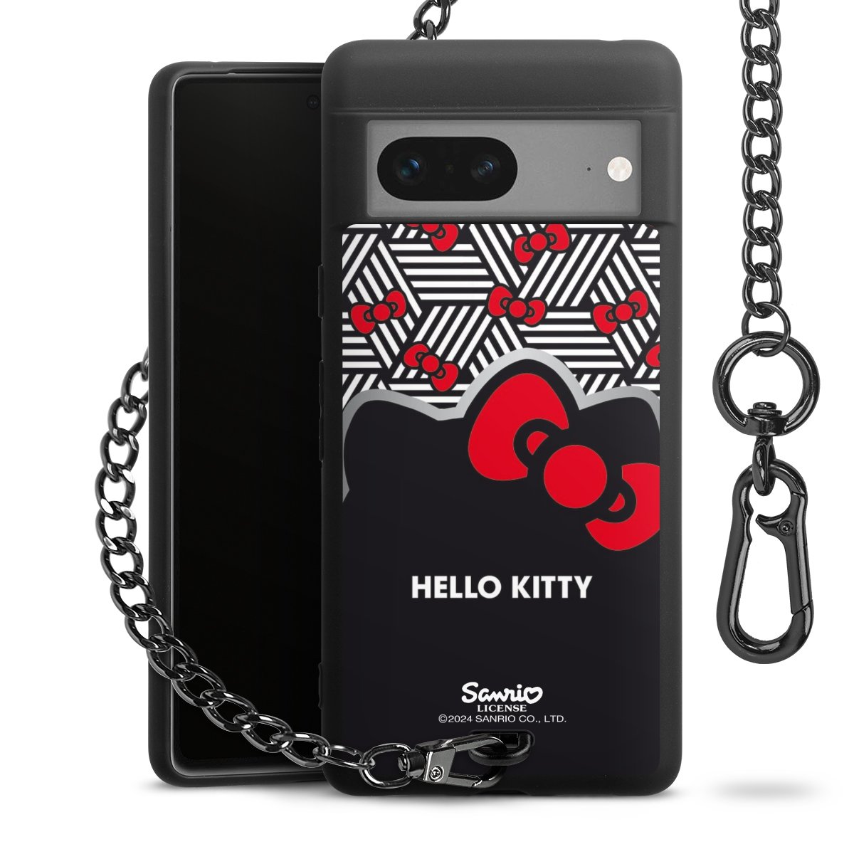Die mattschwarze Silikon-Handyhülle besteht aus robustem TPU (thermoplastisches Polyurethan). Sie ist flexibel und schützt Dein Smartphone vor Stößen und Kratzern. Die Kette sowie der Karabinerhaken sind aus Metall in Gunmetal-Optik gefertigt. Für dieses Produkt kommen ausschließlich TÜV-geprüfte Materialien zum Einsatz.