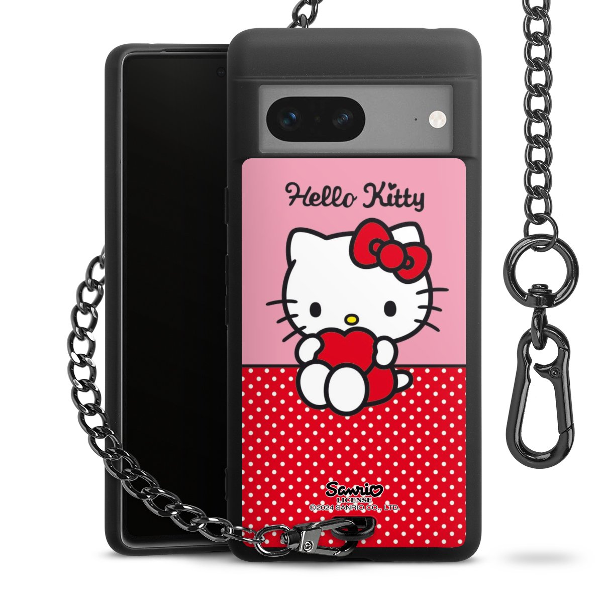 Die mattschwarze Silikon-Handyhülle besteht aus robustem TPU (thermoplastisches Polyurethan). Sie ist flexibel und schützt Dein Smartphone vor Stößen und Kratzern. Die Kette sowie der Karabinerhaken sind aus Metall in Gunmetal-Optik gefertigt. Für dieses Produkt kommen ausschließlich TÜV-geprüfte Materialien zum Einsatz.