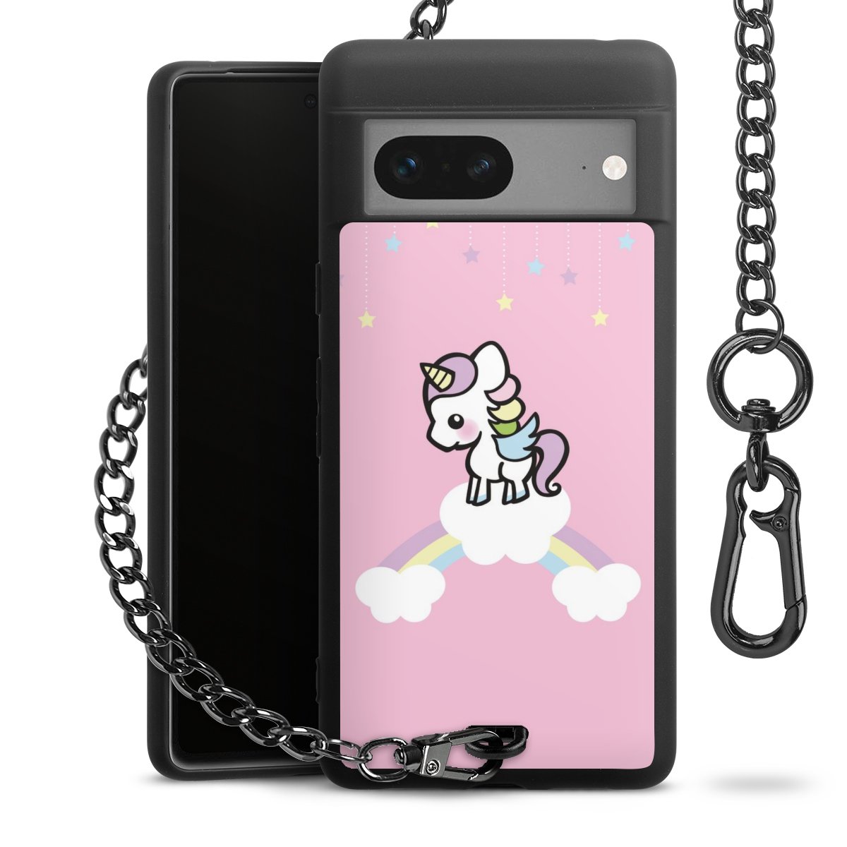 Die mattschwarze Silikon-Handyhülle besteht aus robustem TPU (thermoplastisches Polyurethan). Sie ist flexibel und schützt Dein Smartphone vor Stößen und Kratzern. Die Kette sowie der Karabinerhaken sind aus Metall in Gunmetal-Optik gefertigt. Für dieses Produkt kommen ausschließlich TÜV-geprüfte Materialien zum Einsatz.