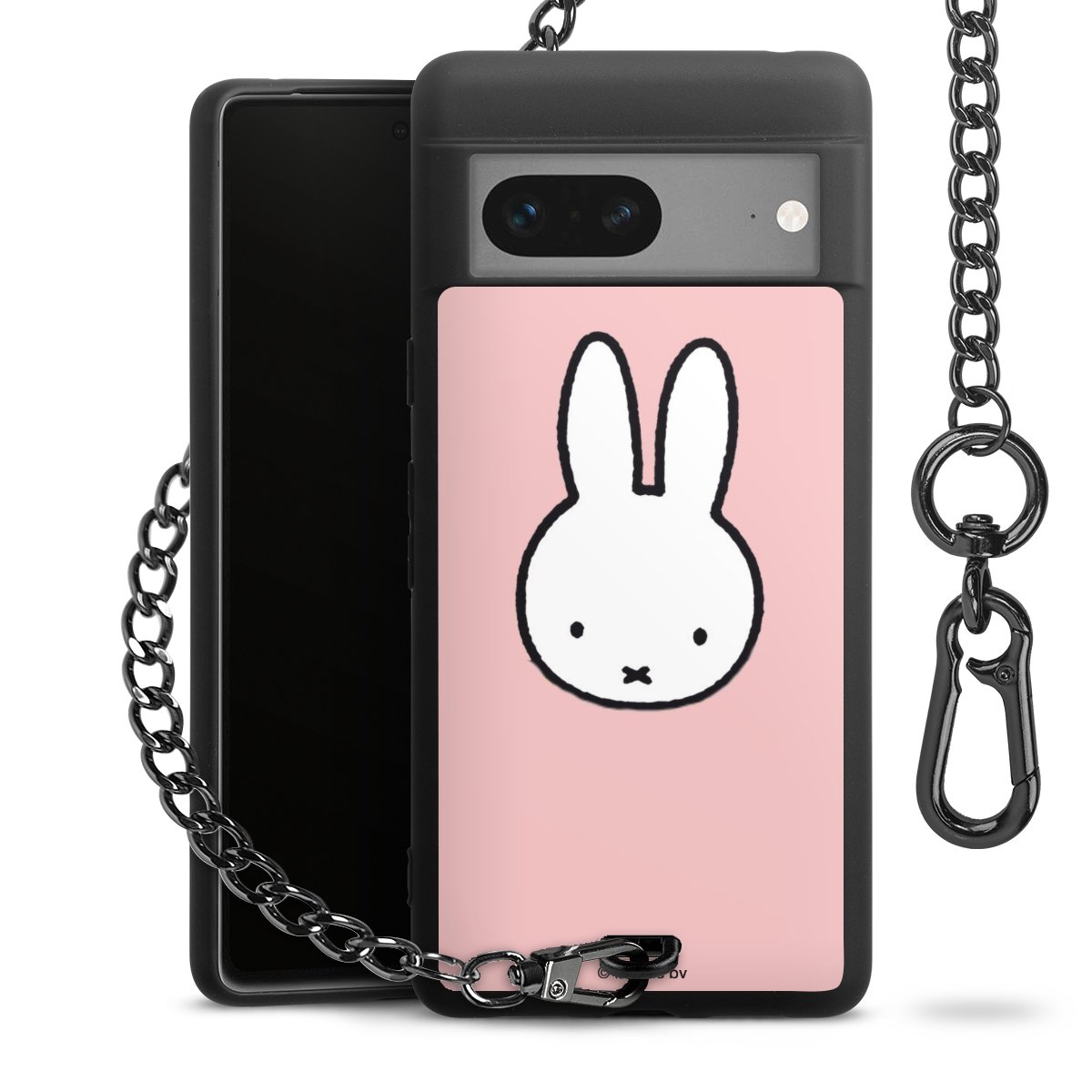 Die mattschwarze Silikon-Handyhülle besteht aus robustem TPU (thermoplastisches Polyurethan). Sie ist flexibel und schützt Dein Smartphone vor Stößen und Kratzern. Die Kette sowie der Karabinerhaken sind aus Metall in Gunmetal-Optik gefertigt. Für dieses Produkt kommen ausschließlich TÜV-geprüfte Materialien zum Einsatz.