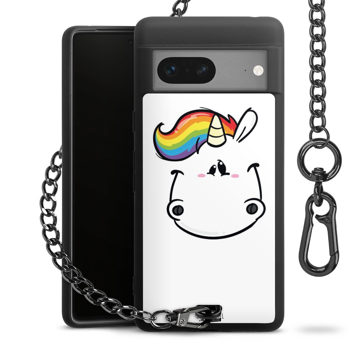 Die mattschwarze Silikon-Handyhülle besteht aus robustem TPU (thermoplastisches Polyurethan). Sie ist flexibel und schützt Dein Smartphone vor Stößen und Kratzern. Die Kette sowie der Karabinerhaken sind aus Metall in Gunmetal-Optik gefertigt. Für dieses Produkt kommen ausschließlich TÜV-geprüfte Materialien zum Einsatz.