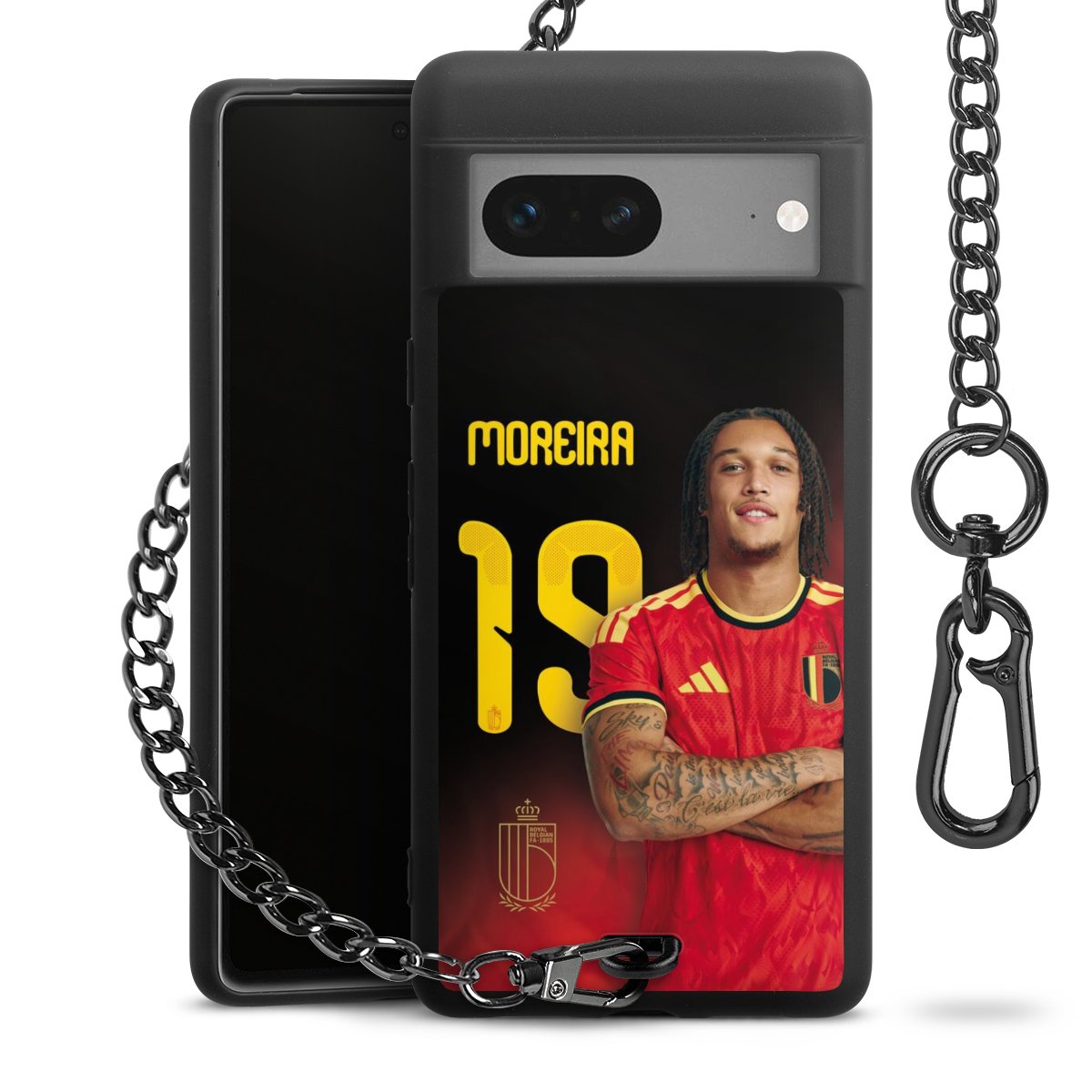 Die mattschwarze Silikon-Handyhülle besteht aus robustem TPU (thermoplastisches Polyurethan). Sie ist flexibel und schützt Dein Smartphone vor Stößen und Kratzern. Die Kette sowie der Karabinerhaken sind aus Metall in Gunmetal-Optik gefertigt. Für dieses Produkt kommen ausschließlich TÜV-geprüfte Materialien zum Einsatz.