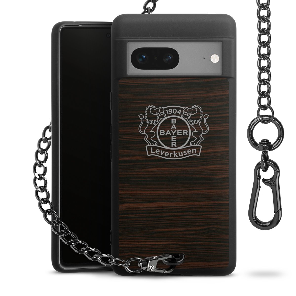 Die mattschwarze Silikon-Handyhülle besteht aus robustem TPU (thermoplastisches Polyurethan). Sie ist flexibel und schützt Dein Smartphone vor Stößen und Kratzern. Die Kette sowie der Karabinerhaken sind aus Metall in Gunmetal-Optik gefertigt. Für dieses Produkt kommen ausschließlich TÜV-geprüfte Materialien zum Einsatz.