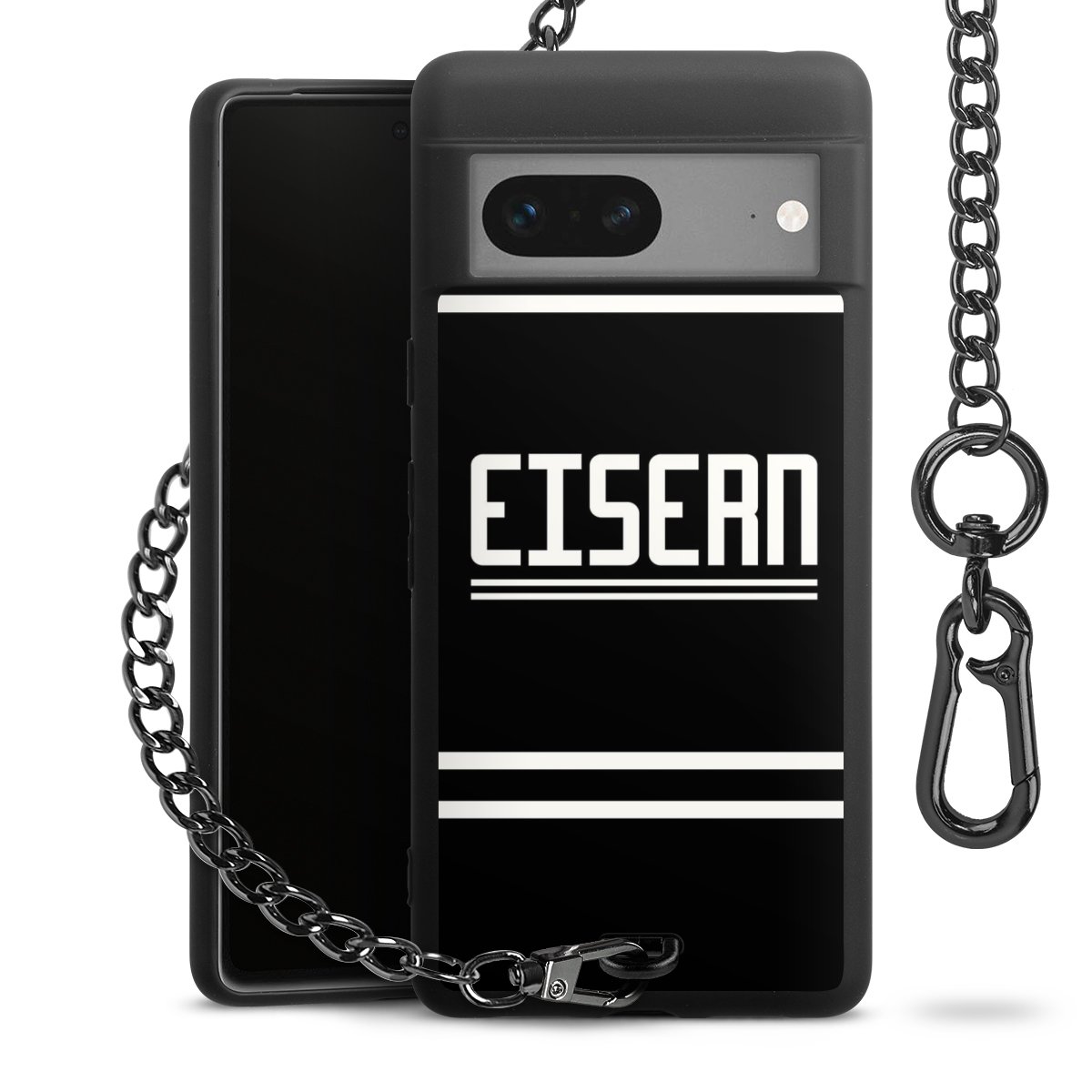 • Mattschwarze Handyhülle mit Metallkette