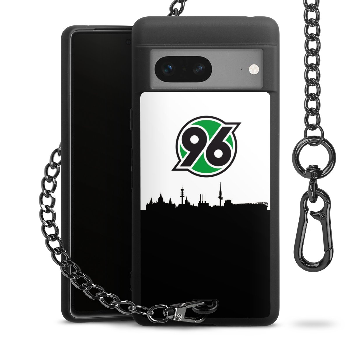Die mattschwarze Silikon-Handyhülle besteht aus robustem TPU (thermoplastisches Polyurethan). Sie ist flexibel und schützt Dein Smartphone vor Stößen und Kratzern. Die Kette sowie der Karabinerhaken sind aus Metall in Gunmetal-Optik gefertigt. Für dieses Produkt kommen ausschließlich TÜV-geprüfte Materialien zum Einsatz.