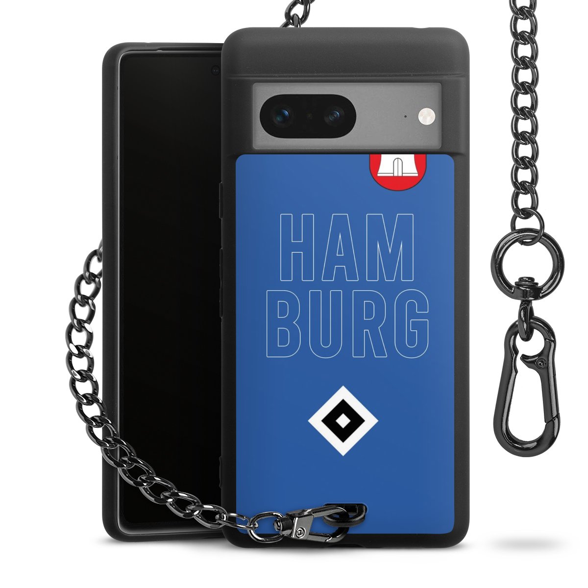 Die mattschwarze Silikon-Handyhülle besteht aus robustem TPU (thermoplastisches Polyurethan). Sie ist flexibel und schützt Dein Smartphone vor Stößen und Kratzern. Die Kette sowie der Karabinerhaken sind aus Metall in Gunmetal-Optik gefertigt. Für dieses Produkt kommen ausschließlich TÜV-geprüfte Materialien zum Einsatz.