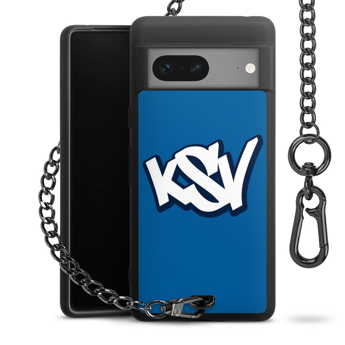 Die mattschwarze Silikon-Handyhülle besteht aus robustem TPU (thermoplastisches Polyurethan). Sie ist flexibel und schützt Dein Smartphone vor Stößen und Kratzern. Die Kette sowie der Karabinerhaken sind aus Metall in Gunmetal-Optik gefertigt. Für dieses Produkt kommen ausschließlich TÜV-geprüfte Materialien zum Einsatz.