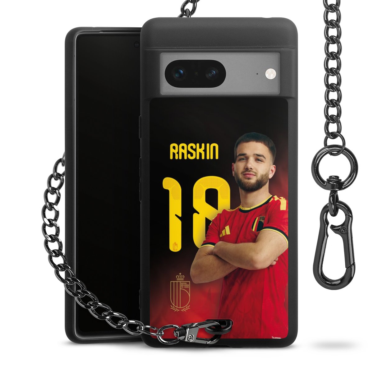 Die mattschwarze Silikon-Handyhülle besteht aus robustem TPU (thermoplastisches Polyurethan). Sie ist flexibel und schützt Dein Smartphone vor Stößen und Kratzern. Die Kette sowie der Karabinerhaken sind aus Metall in Gunmetal-Optik gefertigt. Für dieses Produkt kommen ausschließlich TÜV-geprüfte Materialien zum Einsatz.