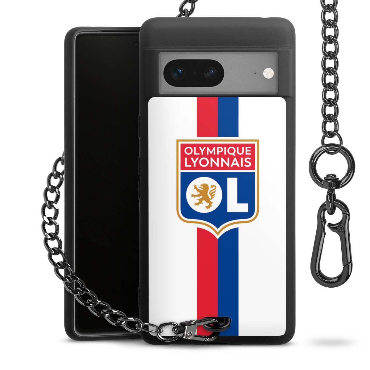 Die mattschwarze Silikon-Handyhülle besteht aus robustem TPU (thermoplastisches Polyurethan). Sie ist flexibel und schützt Dein Smartphone vor Stößen und Kratzern. Die Kette sowie der Karabinerhaken sind aus Metall in Gunmetal-Optik gefertigt. Für dieses Produkt kommen ausschließlich TÜV-geprüfte Materialien zum Einsatz.