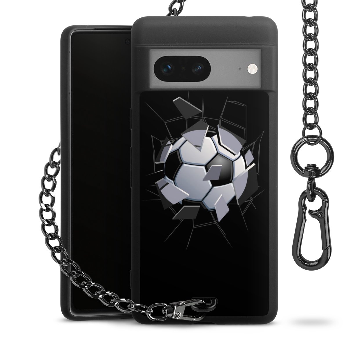 - Mattschwarze Handyhülle mit Metallkette