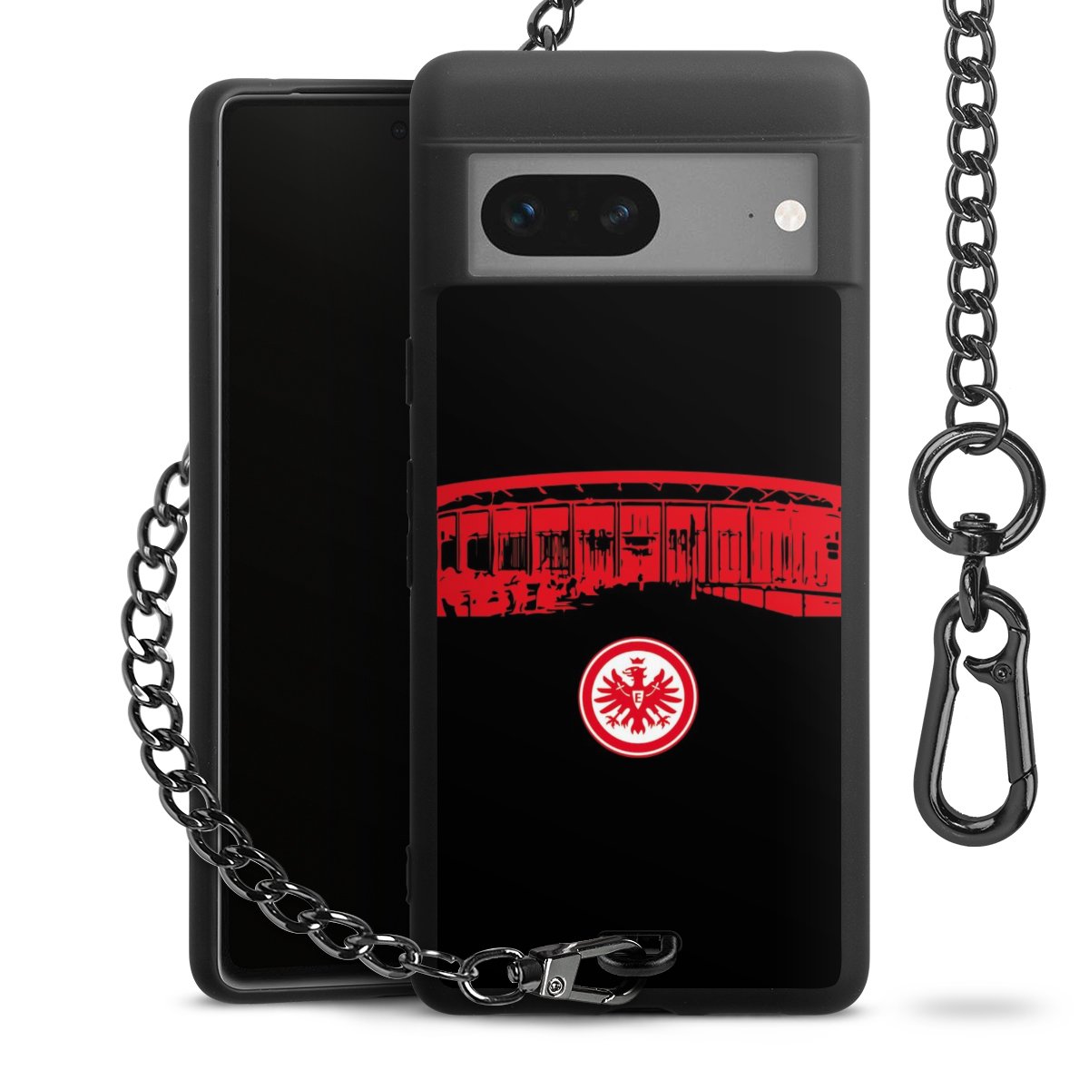• Mattschwarze Handyhülle mit Metallkette
