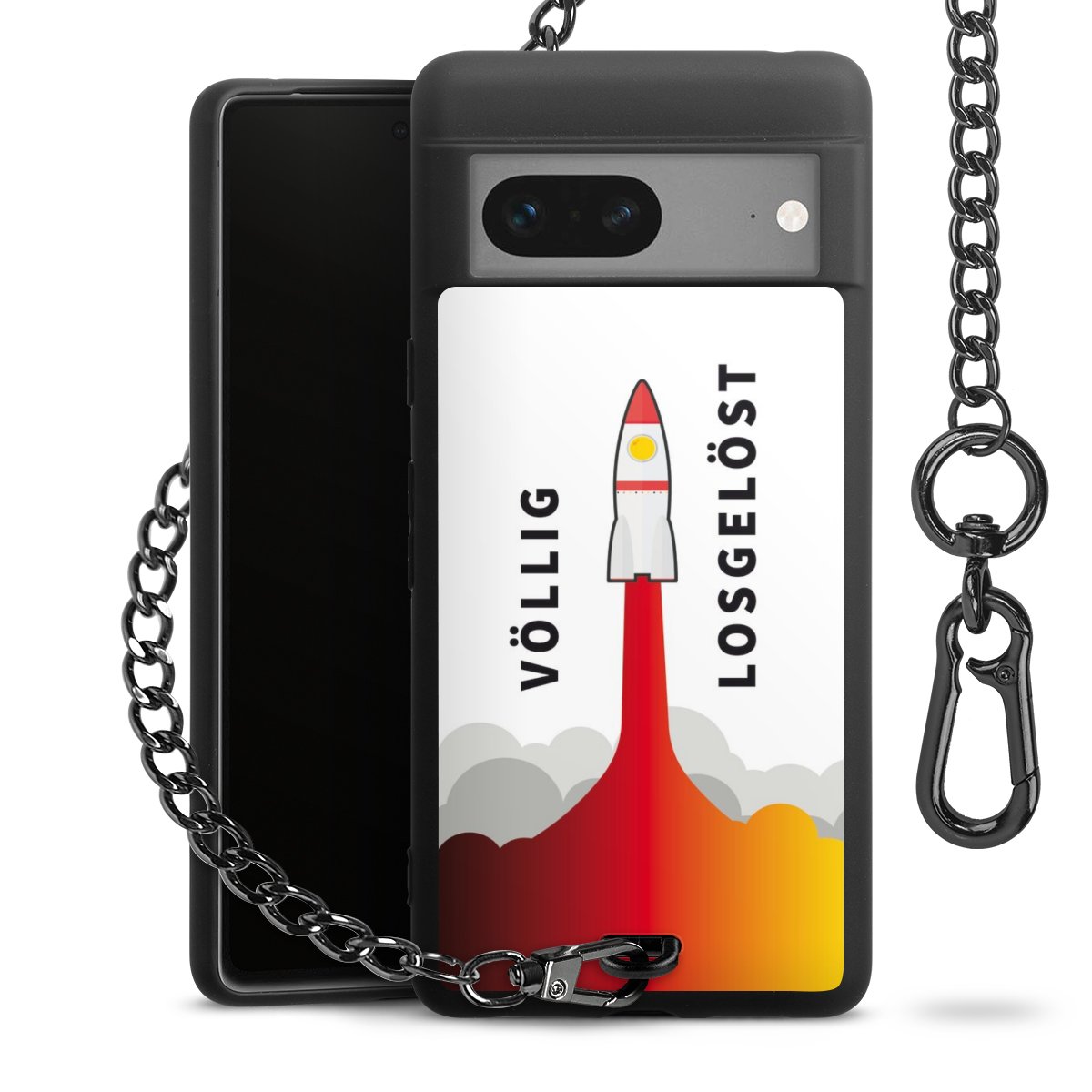 Die mattschwarze Silikon-Handyhülle besteht aus robustem TPU (thermoplastisches Polyurethan). Sie ist flexibel und schützt Dein Smartphone vor Stößen und Kratzern. Die Kette sowie der Karabinerhaken sind aus Metall in Gunmetal-Optik gefertigt. Für dieses Produkt kommen ausschließlich TÜV-geprüfte Materialien zum Einsatz.