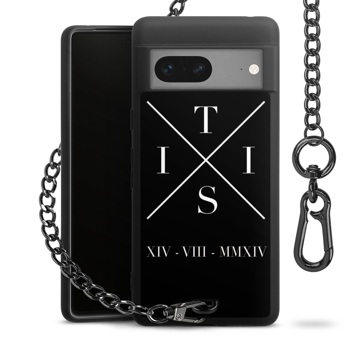 Die mattschwarze Silikon-Handyhülle besteht aus robustem TPU (thermoplastisches Polyurethan). Sie ist flexibel und schützt Dein Smartphone vor Stößen und Kratzern. Die Kette sowie der Karabinerhaken sind aus Metall in Gunmetal-Optik gefertigt. Für dieses Produkt kommen ausschließlich TÜV-geprüfte Materialien zum Einsatz.