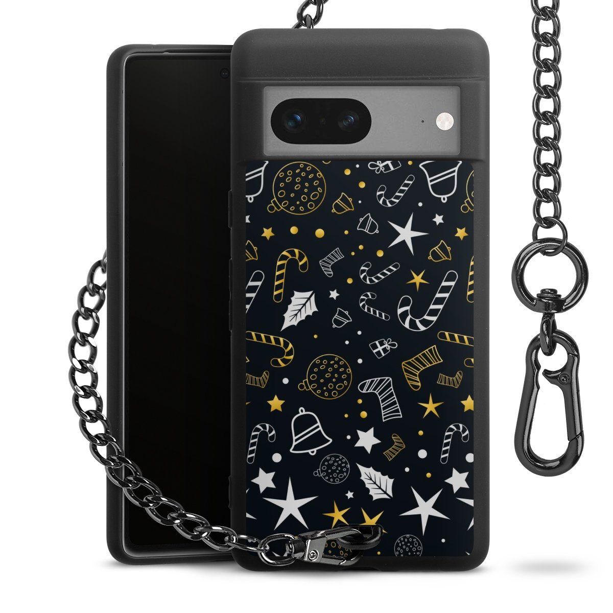 - Mattschwarze Handyhülle mit Metallkette