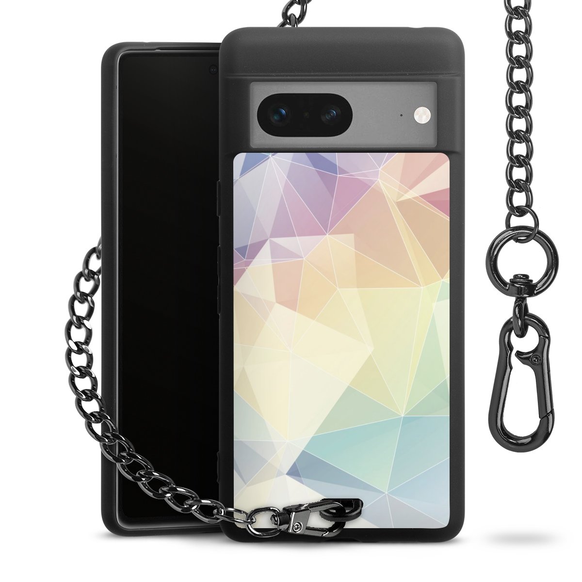 Die mattschwarze Silikon-Handyhülle besteht aus robustem TPU (thermoplastisches Polyurethan). Sie ist flexibel und schützt Dein Smartphone vor Stößen und Kratzern. Die Kette sowie der Karabinerhaken sind aus Metall in Gunmetal-Optik gefertigt. Für dieses Produkt kommen ausschließlich TÜV-geprüfte Materialien zum Einsatz.