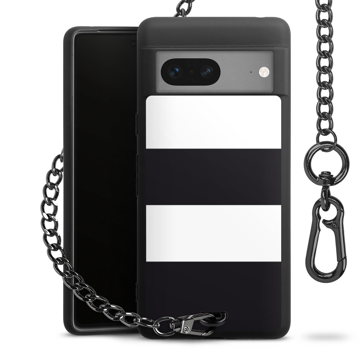 - Mattschwarze Handyhülle mit Metallkette