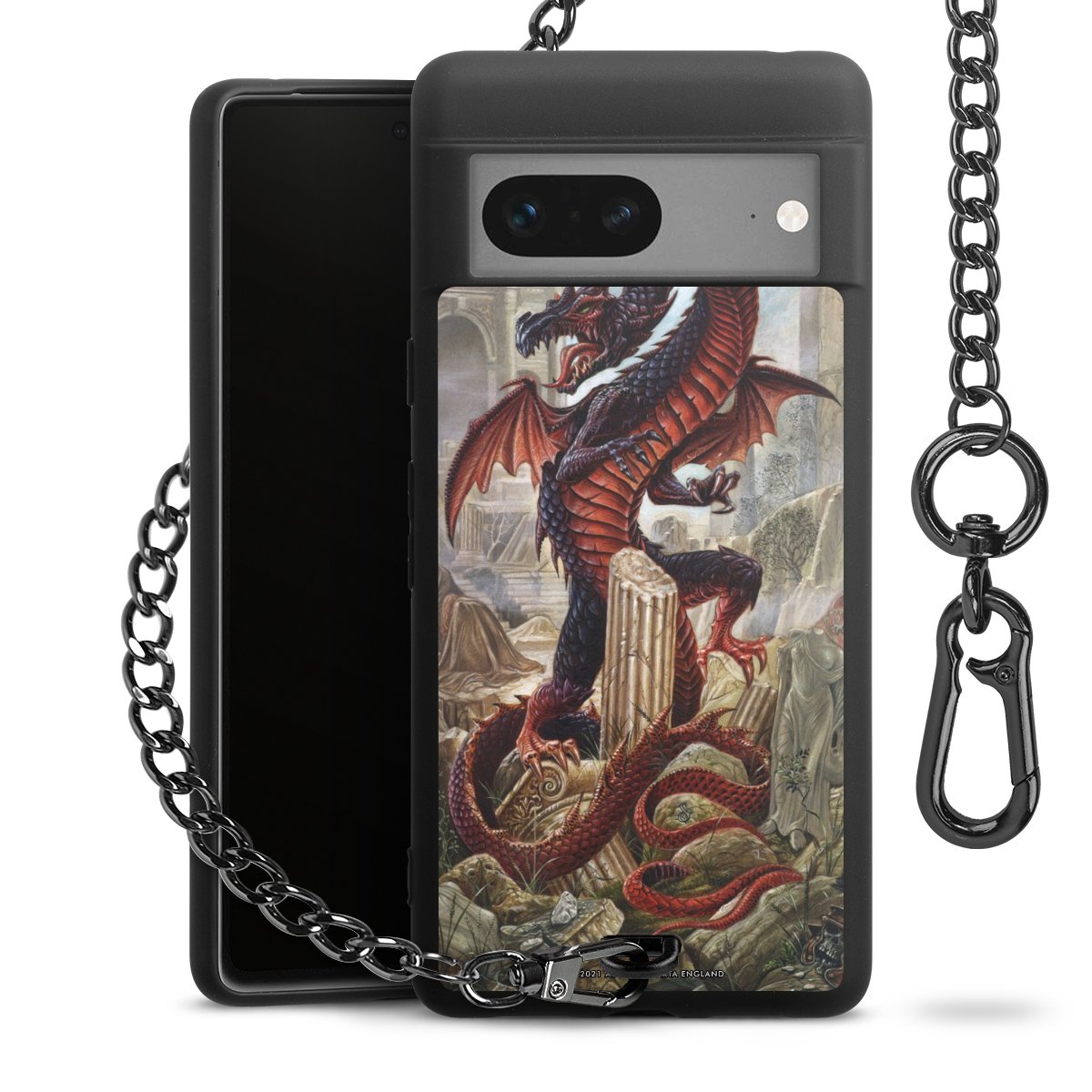 Die mattschwarze Silikon-Handyhülle besteht aus robustem TPU (thermoplastisches Polyurethan). Sie ist flexibel und schützt Dein Smartphone vor Stößen und Kratzern. Die Kette sowie der Karabinerhaken sind aus Metall in Gunmetal-Optik gefertigt. Für dieses Produkt kommen ausschließlich TÜV-geprüfte Materialien zum Einsatz.
