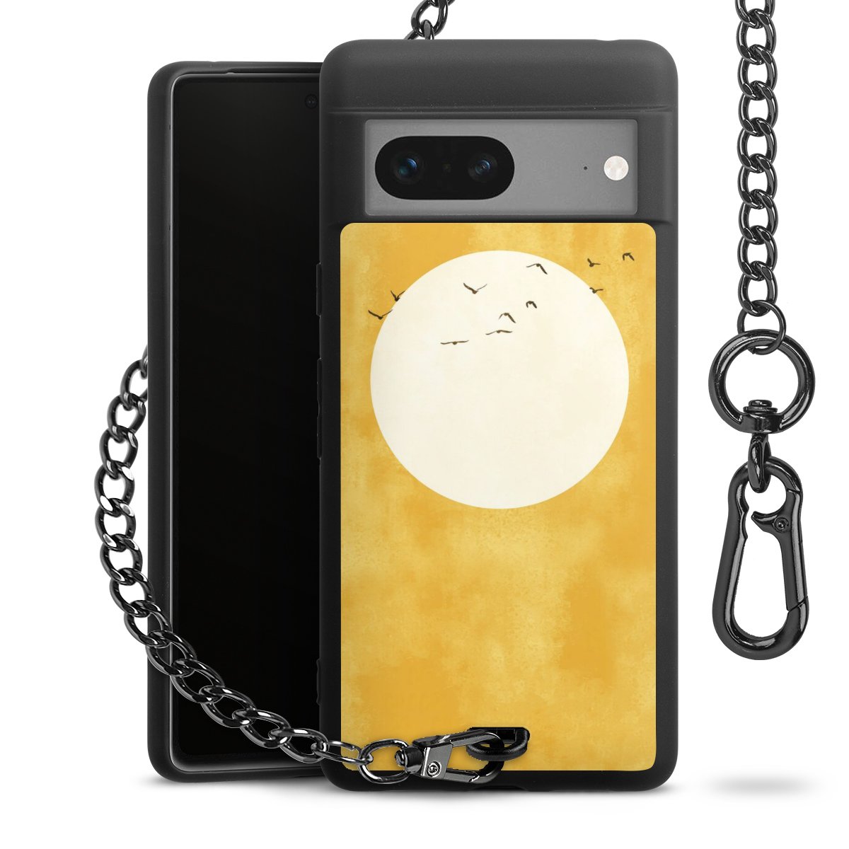 • Mattschwarze Handyhülle mit Metallkette
