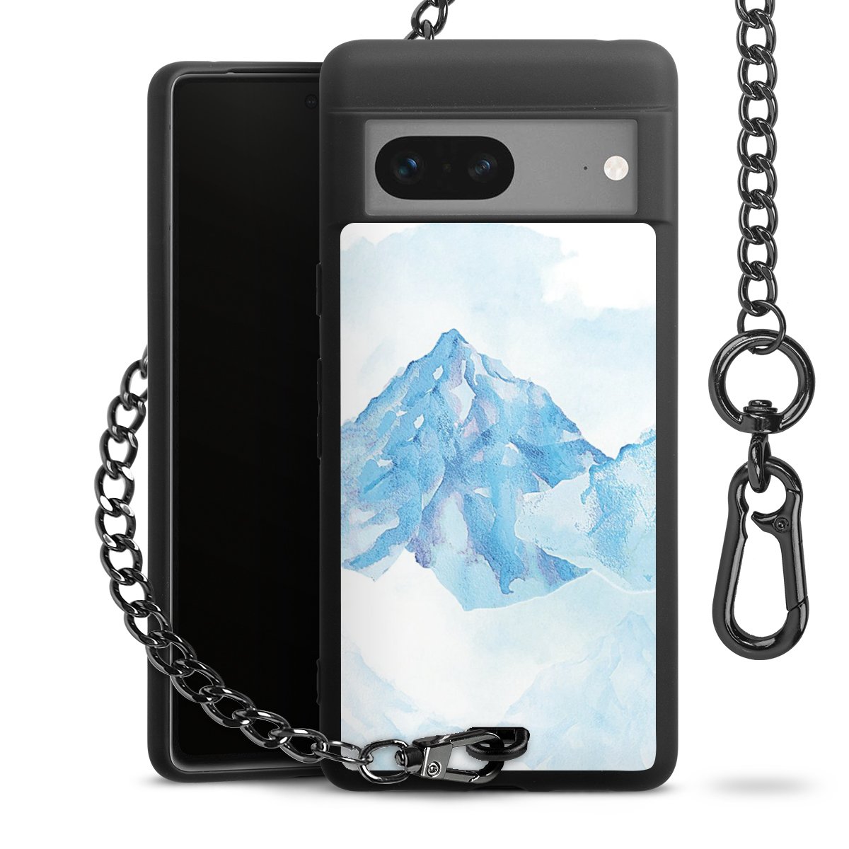 - Mattschwarze Handyhülle mit Metallkette