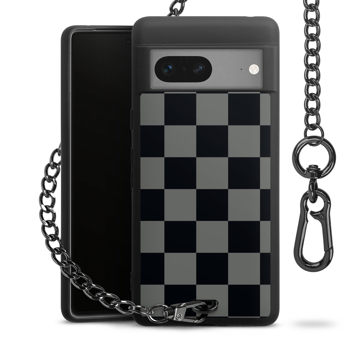 - Mattschwarze Handyhülle mit Metallkette