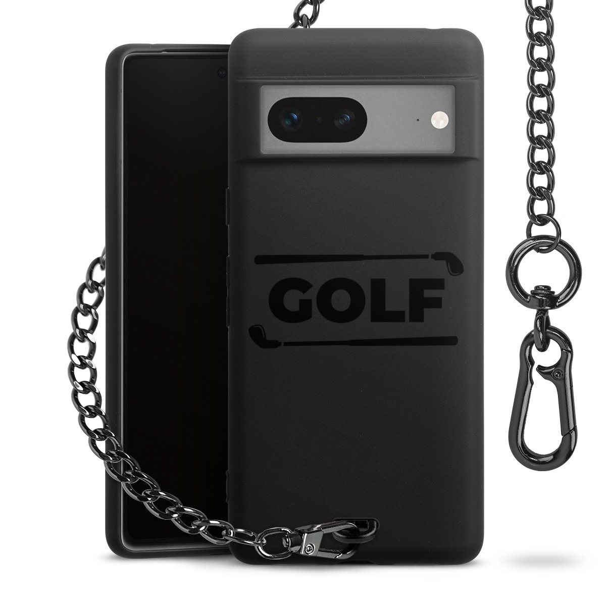 • Mattschwarze Handyhülle mit Metallkette