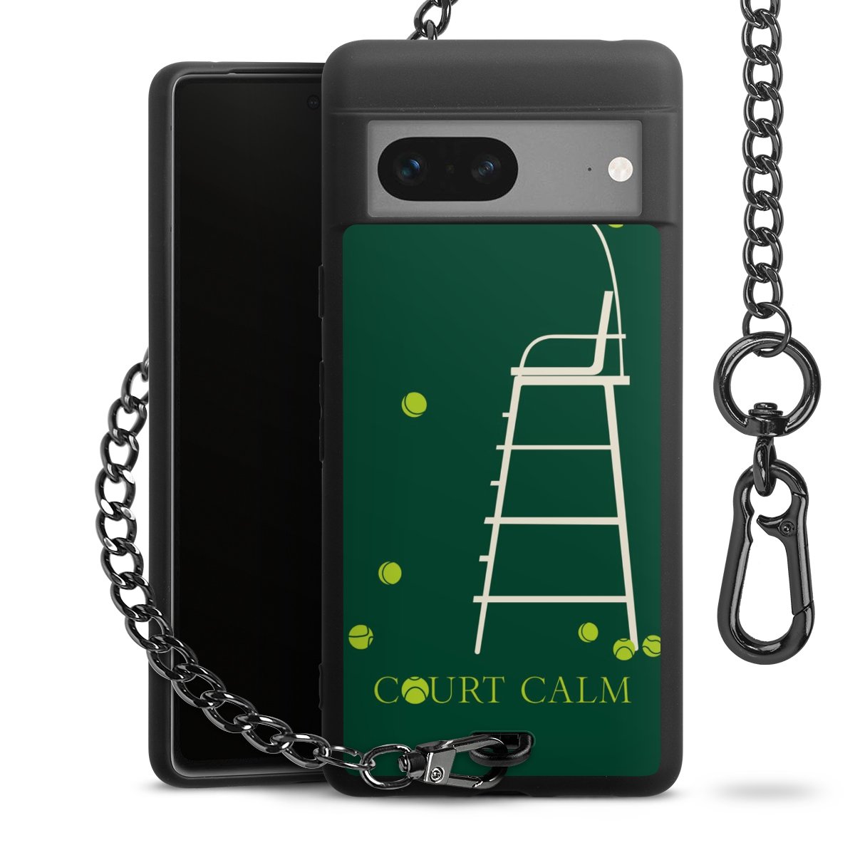 Die mattschwarze Silikon-Handyhülle besteht aus robustem TPU (thermoplastisches Polyurethan). Sie ist flexibel und schützt Dein Smartphone vor Stößen und Kratzern. Die Kette sowie der Karabinerhaken sind aus Metall in Gunmetal-Optik gefertigt. Für dieses Produkt kommen ausschließlich TÜV-geprüfte Materialien zum Einsatz.