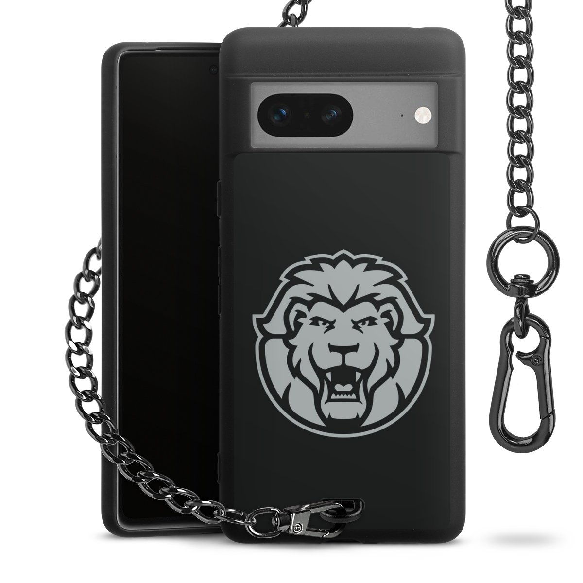 Die mattschwarze Silikon-Handyhülle besteht aus robustem TPU (thermoplastisches Polyurethan). Sie ist flexibel und schützt Dein Smartphone vor Stößen und Kratzern. Die Kette sowie der Karabinerhaken sind aus Metall in Gunmetal-Optik gefertigt. Für dieses Produkt kommen ausschließlich TÜV-geprüfte Materialien zum Einsatz.