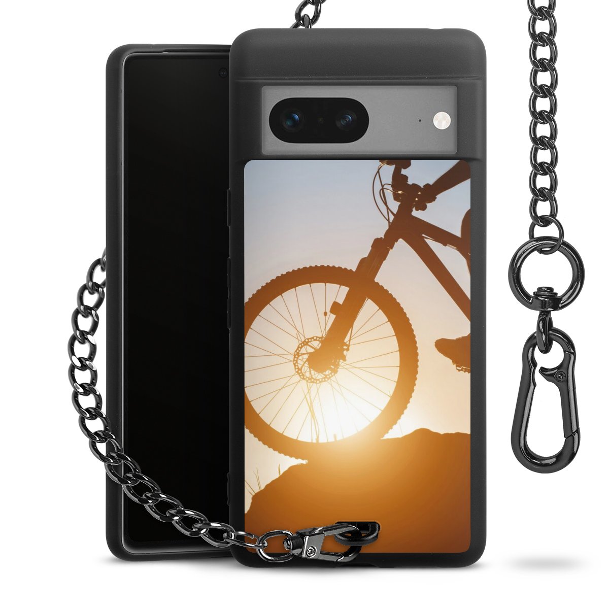 Die mattschwarze Silikon-Handyhülle besteht aus robustem TPU (thermoplastisches Polyurethan). Sie ist flexibel und schützt Dein Smartphone vor Stößen und Kratzern. Die Kette sowie der Karabinerhaken sind aus Metall in Gunmetal-Optik gefertigt. Für dieses Produkt kommen ausschließlich TÜV-geprüfte Materialien zum Einsatz.